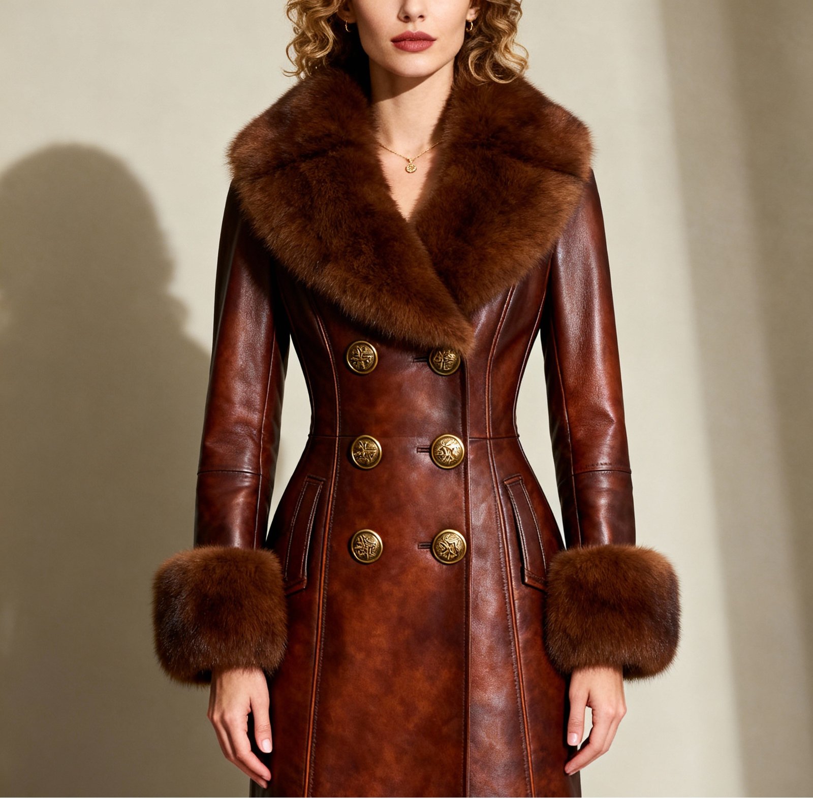To wear an Italian Luxury Mink Fur Coat for Women is to embody a story told through texture, color, and craftsmanship. Every detail of La Dama di Terra speaks the language of sophistication — from the supple 100% full-grain Italian calfskin leather to the deep, velvety chestnut brown tone that reveals the natural beauty of the hide.