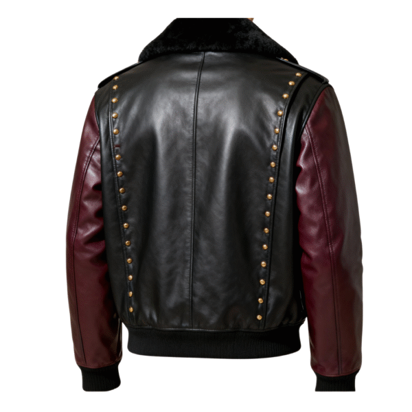 “Al-Farid Luxe – No.1 Custom Bomber Jacket in Black & Wine-Red Leather”